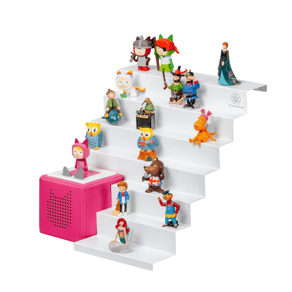 Das TRAUMBAUM® Tonie Regal ist die ideale Ergänzung für dein IKEA KALLAX, um alle Toniefiguren deiner Kinder sicher und liebevoll zu organisieren.